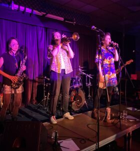 We’ve been busy since March: Ruby who played bass (above) has formed a new band in Leeds called Stoneplant (@stoneplantband on Insta). Sam is getting ready to release a new EP and Kim has just dropped a new single (see footer for the audio). Lucy from More Peas is playing with another act at Biddle Bros tonight and Ich bin Finn are also talking about writing new songs too! After playing a solo set at the Stowathon on 4 May, Kim will be playing more local solo gigs in July and August (more to follow).