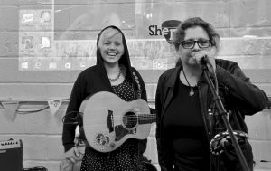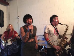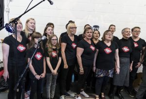 DAY 2: Auntie Maureen (DJ), Natural Voices Choir, Mariache17, Jessie Godwin, Shay Khan (as Shabsi Mann), Laurie MacNamee, Julie Usher, Kim Watson (compere), Chuck SJ Hay and Efa Thomas, Efa and Kim, the crowd and bar staff at the Wild Card.